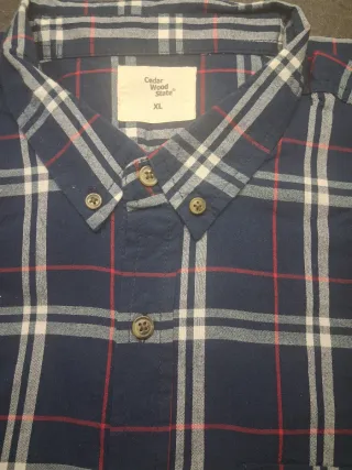 Camisa de vestir de manga larga con un diseño a cuadros clásico. - Cuello con botones. - Estampado de cuadros en azul, blanco y rojo.