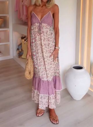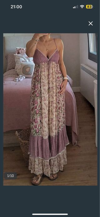 Vestido largo de Zara con un diseño floral y detalles de encaje. Ideal para un look bohemio y fresco. Lleva forro Talla XS (talla más amplio de lo habitual) - Estampado floral - Tirantes finos - Largo maxi - Volantes en el bajo Pvp 49,95€