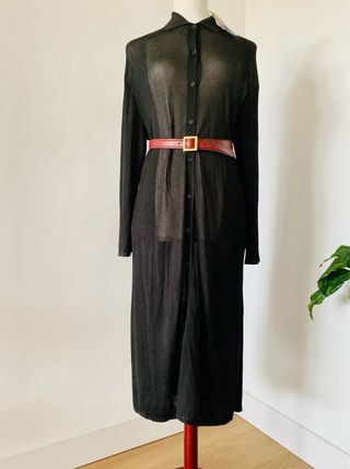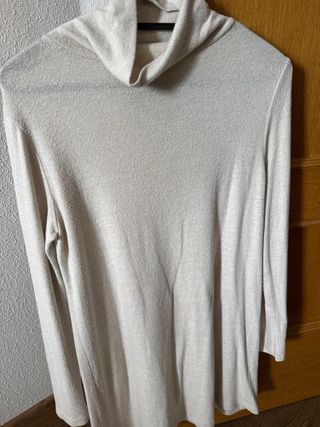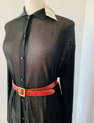Vestido punto fino con brillo de Zara con un diseño elegante y moderno. Su tejido en viscosa tiene bandas verticales semitransparentes. - Diseño camisero. - Cierre de botones. - Manga larga. Talla s amplia, también perfecto para M Sin estrenar, con etiqueta
