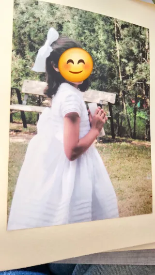 Vestido de flamenca para niña con un alegre estampado. Vestido no pesa muy ligero se ha sacado pero todavía se puede sacar un poco, poco uso - Diseño con volantes en la falda. - Detalles de encaje blanco. - Mangas cortas.