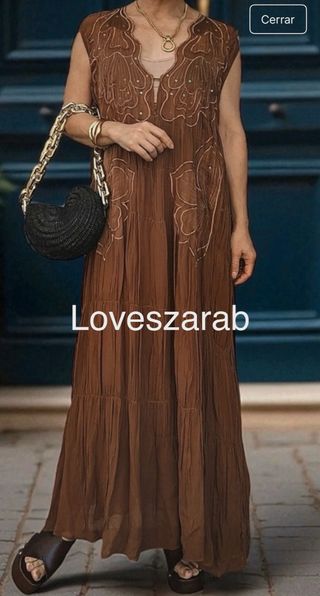 Vestido largo de Zara con un bonito bordado. - Diseño sin mangas. - Escote en pico. - Detalle de bordados.