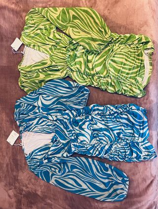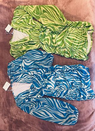Conjunto de dos vestidos con un llamativo estampado. - Diseño con escote en V. - Mangas largas abullonadas. - Detalle de volantes en el bajo. - Tejido ligero y fluido. - Super elástico para todas las tallas no tiene talla única