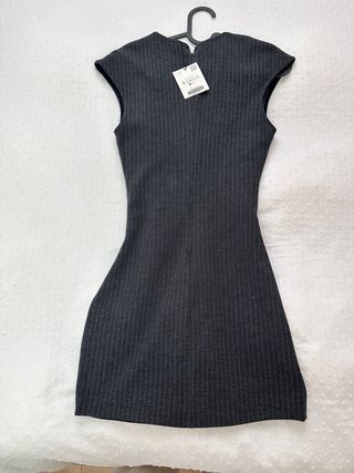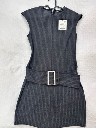 Vestido de Zara con un diseño elegante de rayas finas. - Color gris con rayas finas estilo sastre y cinturón ancho que marca la cintura. - Talla S (36/8). -El tejido es elástico. Lo vendo porque al final no lo voy a usar. 📦 Envío por Wallapop o entrega en mano.