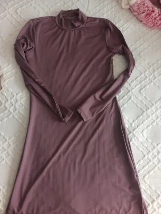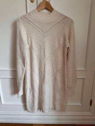 Vestido de invierno de punto, la parte de abajo con estampado de camuflaje. Buen estado. Talla M - Cuello alto. - Detalle de botones en el lateral. - Falda con estampado de camuflaje.