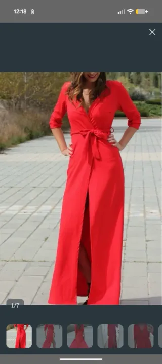 Vestido de fiesta largo, sin estrenar.De la marca Lady Framboise. Rojo precioso. Con la etiqueta puesta. Yo uso la S, pero da más talla, es elástico.Vale perfectamente para una M o L. Regalo el cinturón negro que también está sin estrenar. Las sandalias también están en mi perfil - Diseño cruzado con cinturón. - Abertura lateral. - Manga tres cuartos.