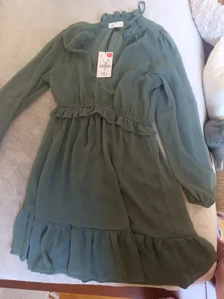 Vestido de Lefties con un bonito diseño. - Tejido ligero y vaporoso. - Detalle de volantes. - Largo hasta la rodilla.