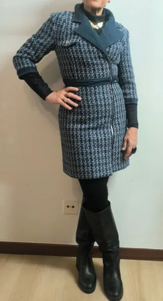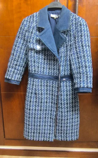 NUEVO CON ETIQUETA Vestido de la marca Morgan con un diseño original que combina tweed y denim. Talla 34-36 Se puede llevar de vestido o abierta la cremallera a modo de abrigo. - Tejido principal de tweed con detalles en denim. - Cremallera frontal. - Cinturón de denim a la cintura. - Mangas tres cuartos. - Forro interior Diseño juvenil y tejidos de muy buena calidad. Se usó solo para una sesión de fotos. Las prendas usadas para sesiones de fotos pueden tener algún resto de maquillaje.