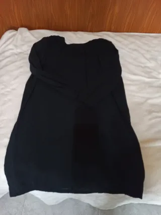 Vestido midi de polipiel sin tirantes.Espectacular vestido midi negro de piel vegana o polipiel,lapiz.Lleva cremallera en un costado y abertura en la parte de atras.Sienta muy bien.Lleva en la espalda unas tiras cruzadas tipo corset muy favorecedoras.Talla S..Stradivarius.Nuevo con etiquetas.No brilla tanto como en las fotos.Es mas bien mate. - Diseño palabra de honor. - Largo midi.