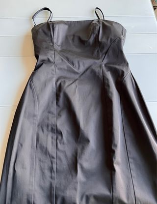 Vestido negro de corte entallado. - Diseño sin mangas. - Escote en V. - Cremallera lateral. - 38 x 88 cm (ancho x largo)