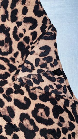 Vestido largo con un llamativo estampado de leopardo. Su diseño fluido lo hace ideal para diversas ocasiones. - Estampado de leopardo. - Corte largo y triangular