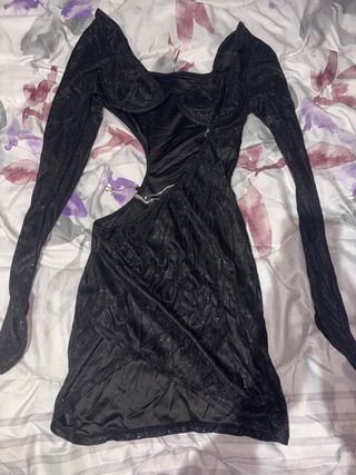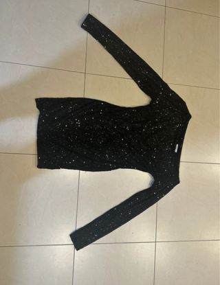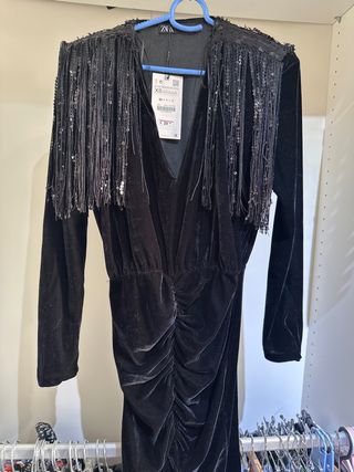 Vestido Zara Negro Terciopelo Flecos Lentejuelas