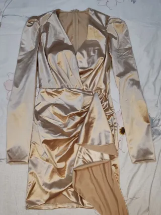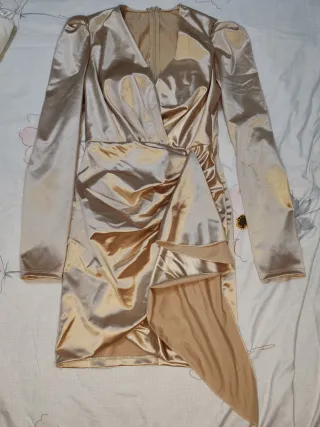 Elegante vestido de Zara con un acabado satinado. - Diseño cruzado. - Drapeado en la cintura. - Manga larga.