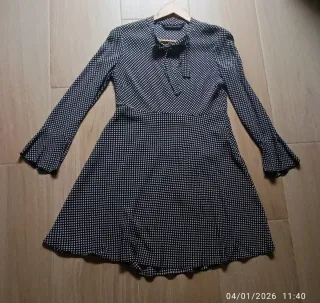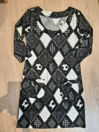 Vestido de manga tres cuartos con un llamativo estampado de rombos y estrellas. Queda super chulo, tejido muy cómodo, es una S pero queda ceñido. Lo vendo nuevo.