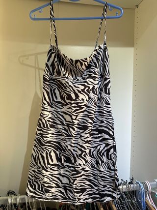 Vestido con estampado de cebra. - Diseño de tirantes. - Corte recto.