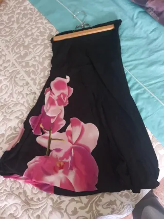 Elegante vestido con un estampado floral vibrante y llamativo. - Diseño de un solo hombro y escote asimétrico - Cintura elástica para un ajuste cómodo. - Falda larga con caída midi - Tejido ligero y fluido. En la marca he puesto local porque corté la etiqueta y no recuerdo la marca pero, como se puede ver en una foto, está hecho en España y lo compré en una Boutique. De la la parte de atrás mide 140 cm y de delante 110cm contando desde el pecho. Sólo lo he usado para una fiesta. Puede ir con el cinturón que adjunto o cualquiera que tengas que le pueda ir bien. También tengo un bolso rojo de fiesta que me compré para llevar con este