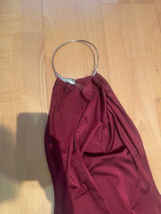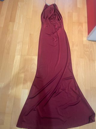 Elegante vestido largo color burdeos con un diseño sofisticado. - Detalle de collar metálico en la parte superior. - Corte que estiliza la figura.