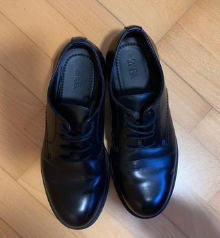 Elegantes zapatos de vestir de Zara, perfectos para cualquier ocasión formal. Graduación, celebraciones... - Diseño clásico con cordones. - Acabado brillante. - Suela resistente.
