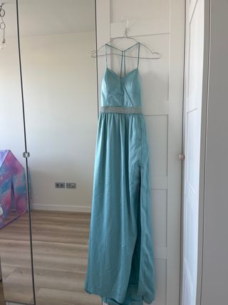 Vestido de fiesta largo verde agua