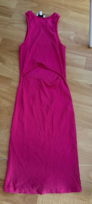 Vestido largo de color rosa con un diseño moderno y favorecedor. - Tejido acanalado. - Abertura en la cintura. - Tirantes finos.