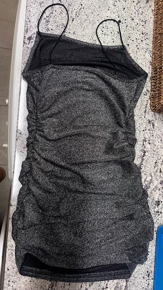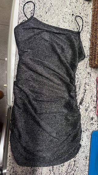 Vestido fiesta plateado brillo