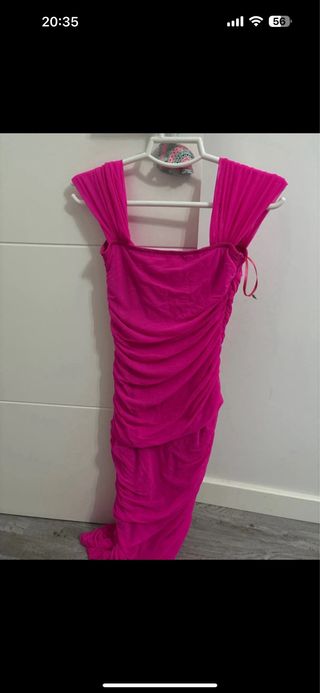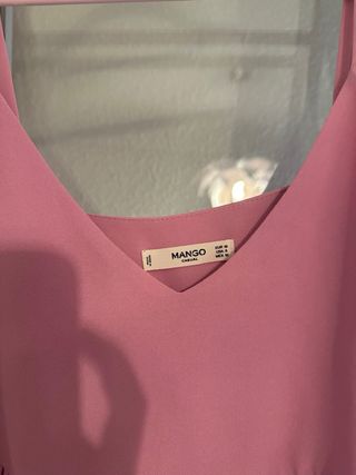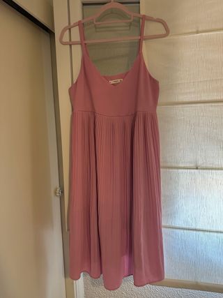 Precioso vestido midi de Mango en color rosa. Es de talla M (equivalente a 38 pero da talla, es anchito) - Diseño plisado en la falda. - Escote en pico. - Tirantes finos.