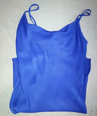 Precioso vestido de Bershka, talla M (38/10), en azul. Es de un tejido suave y brillante, ideal para ocasiones especiales. - Diseño elegante y favorecedor. - Color azul intenso. - Talla M.