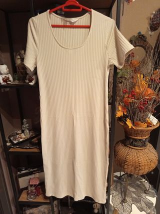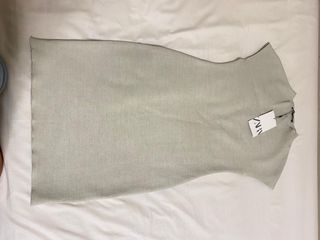 Vestido de punto de Zara en color beige. - Diseño de cuello alto. - Corte recto.