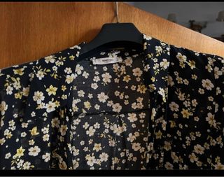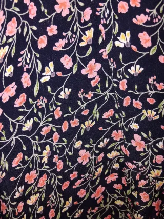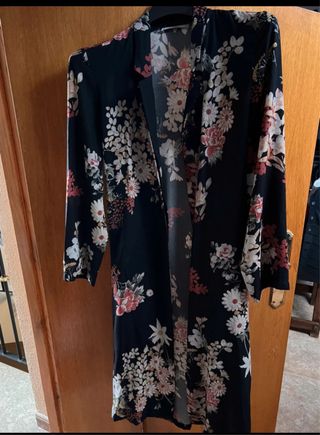 Vestido largo con un bonito estampado floral. Es ligero y perfecto para cualquier ocasión. - Diseño abierto. - Manga larga. - Estampado multicolor sobre fondo negro. - Perfecto estado puesto una vez