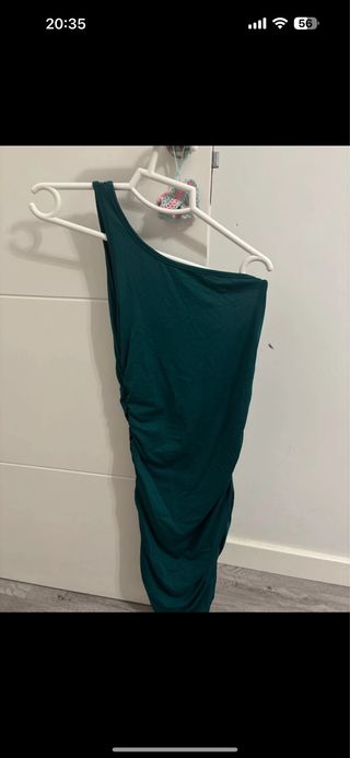 Vestido elegante de color verde con un diseño asimétrico. - Tejido suave y con caída. - Detalle de fruncido lateral. - Corte moderno y favorecedor. mas información al privado