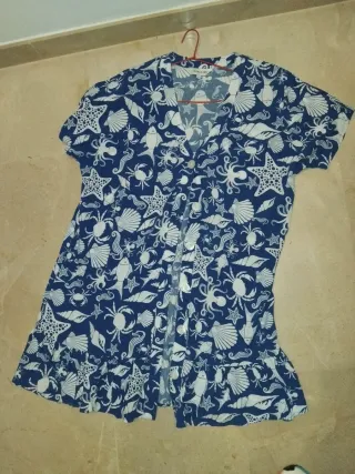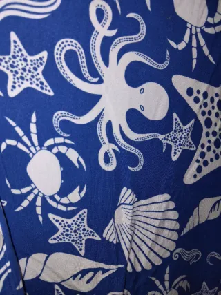 Vestido corto de Pepa Loves con un divertido estampado de motivos marinos. Presenta un diseño con volante en el bajo. - Estampado de conchas, estrellas de mar, pulpos y cangrejos. - Cierre de botones nácar