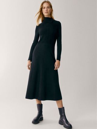 Vestido de punto con canalé vertical que estiliza la figura. Su diseño de cuello alto lo hace ideal para los días más frescos. - Tejido de punto acanalado. - Cuello alto. - Manga larga.