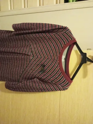 Vestido de manga larga con un llamativo estampado geométrico. Diseño jacquard y estilo retro. Elástico - Diseño de cuello redondo. - Corte recto. - Largo mini. Talla S. Zara. Pecho 45, largo 80 aprox. 🌸🍁