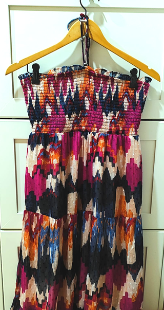Vestido de Custo Barcelona con un diseño vibrante y colorido. - Estampado geométrico y abstracto. - Largo hasta la rodilla. - Tirantes. - Escote redondo. Precio 6.50 euros no negociables ◾ No acepto ofertas ◾ Solo venta por envios ◾ Envio en menos de 24 horas después de su compra.