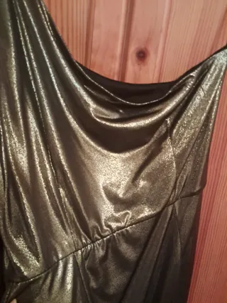 Vestido de fiesta dorado y plateado.