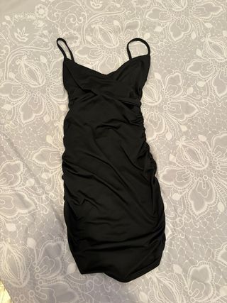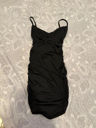 Vestido negro tirantes drapeado