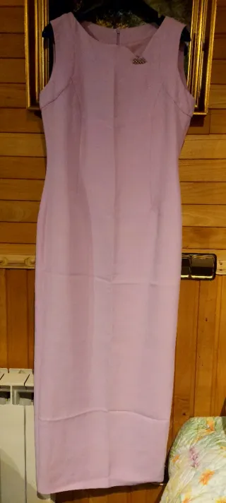 Elegante vestido largo de la marca Paco Guzmán. - Diseño sin mangas. - Largo hasta los tobillos. - Detalle de broche brillante en la parte superior. Pone talla 44, pero es una 38-40.