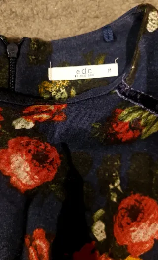 Vestido de manga larga, color azul marino con pequeñas flores estampadas. En buen estado, solo tiene unas puntadas en el cuello, cerca de la etiqueta porque se hizo un agujerito de la alarma que les ponen en las tiendas. Cremallera lateral. Talla M según fabricante, no obstante yo mido toda la ropa que subo para garantizar que te va a quedar perfecta, mira bien todas las fotos que hay subidas! Ver la foto de mi perfil para más información de las ventas. En muy buen estado. Lavado No lo regalo, si te gusta es tuyo por solo 6 euros. Muchos más vestidos en mi perfil.
