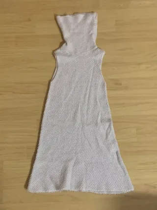 Vestido largo de Zara con escote halter y detalle fruncido. - Diseño elegante y favorecedor. - Tejido suave y con caída. - Ideal para eventos especiales.
