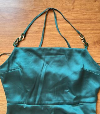 Precioso vestido largo en color verde botella. Diseño elegante con escote drapeado y abertura lateral. - Tirantes finos. - Corsé integrado. Usado solo una ocasión.