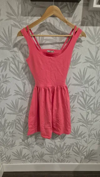 Vestido veraniego de color coral, ideal para días soleados. Su diseño es ligero y cómodo. - Tirantes finos y gruesos. - Espalda al aire. - Cintura elástica. - Falda con vuelo.