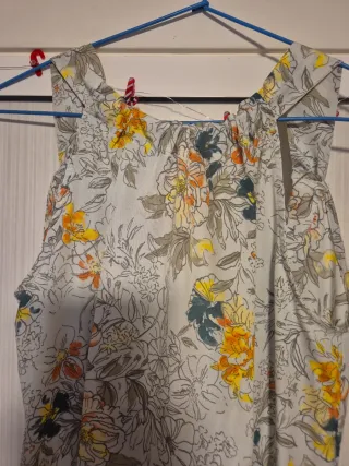 Vestido de verano con un bonito estampado floral. Es ligero y perfecto para los días cálidos. - Diseño sin mangas. - Largo hasta el tobillo. - Escote halter. Con Forro en la falda. Cremallera invisible.
