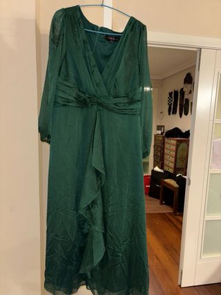 Vestido largo de gasa en color verde, ideal para eventos. Talla 0XL - Diseño elegante. - Detalle de volante. ideal para bodas Nunca puesto