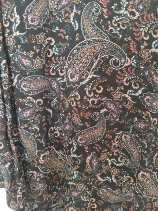 Vestido de mujer con un llamativo estampado paisley. - Diseño de manga larga. - Corte holgado y cómodo. - Estampado multicolor sobre fondo negro.