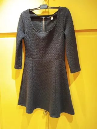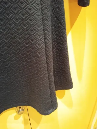 Vestido de manga larga negro, de Springfield. Talla S. Con diseño texturizado. Cremallera en la espalda. Falda con ligero vuelo.