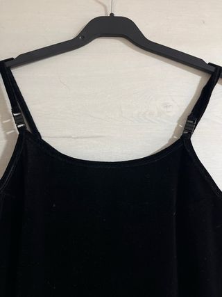 Vestido negro con tela muy elástica que se ajusta al cuerpo. - Diseño ceñido. - Textura con relieve. - Acabado en el bajo con detalle. - Tirantes anchos. Negro con brillo