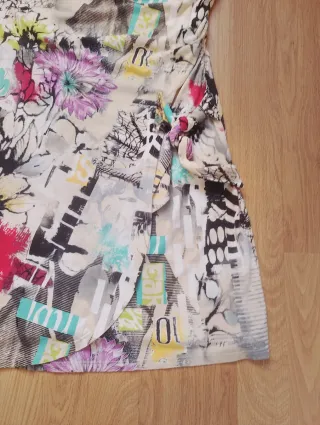 Tejido fluido. Diseño evasé. Diseño corto. Cuello pico. Manga larga con puños elásticos. Sin cierre. Diseño estampado. Talla S nuevo con etiquetas a estrenar.