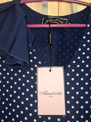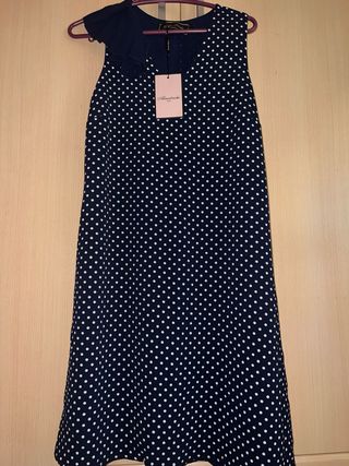 Vestido de la marca Almatrichi con un bonito estampado de lunares. - Diseño sin mangas. - Cuello en V. - Detalle de volantes en los hombros.