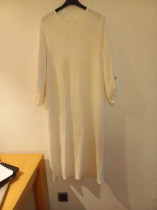 Vestido largo de punto con un diseño elegante y cómodo. - Tejido de punto con textura. - Mangas largas con detalle de vuelta. - Corte recto y fluido.