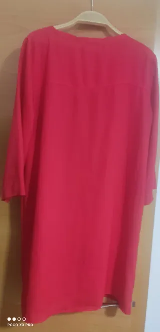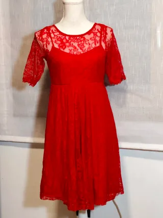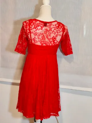Vestido elegante de encaje en color rojo, con etiqueta. - Diseño con mangas cortas de encaje. - Escote redondo. - Falda con caída. - Forro interior. Se recoge en manresa o también hago envíos