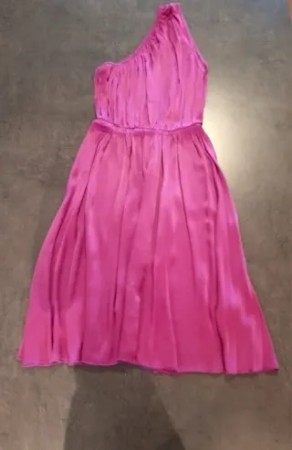 Vestido de un solo hombro en color fucsia. - Diseño fruncido en el corpiño. - Cintura elástica. - Falda con caída. - Tejido satinado.